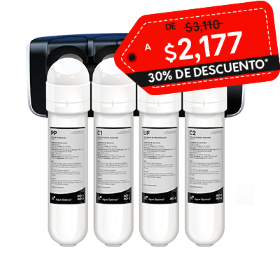 Purificador De Agua Filtro AO3 Bajo Tarja UltrafiltraciónSistema de Ultrafiltración bajo tarja, elimina el 99,99% de bacterias, cloro, olores y sabores. |